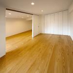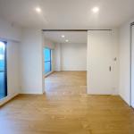 洋室では、もともと和室だった空間を洋室へ変更し、リビングとの間には天井高の大きな3枚吊り引き違い戸を設置することで、明るく広く、開放的なお部屋となるよう工夫しました。壁と天井のクロスは全面貼り替え、床には遮音フローリングを施工して快適性と暮らしやすさを向上。 建具はLIXIL製の収納折戸や引き違い戸を新設し、収納内部には枕棚やハンガーパイプを設置することで、奥行きを無駄なく活かした使いやすいクローゼット空間を実現しました。照明もリビングと同様にダウンライトを新設し、壁・天井の下地補修を含む大工工事によって、洋室全体が新築同様に整えられています。 これにより、日常的に使いやすく、片付きやすい収納と、明るく開放的で快適な居室空間が実現し、お客様のご要望に沿った洋室リフォームとなりました。