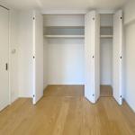 洋室化に合わせて押し入れをリフォームしたクローゼットの様子です。天井高の6枚折れ戸を開くと、上部に枕棚、下部には広々としたパイプハンガーが備わり、収納力と使いやすさが大幅に向上しています。横幅を広げることで、より使いやすい収納空間となっています。