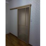 施工後 建具を取替させていただき、クロークを修繕させていただきました。 壁紙にはパール光沢が美しいエレガントなフラワー柄のクロスを貼らせていただきました。