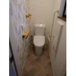 便器交換・洗浄便座・埋込収納庫・ペーパーホルダー・店舗用クッションフロア・クロス |