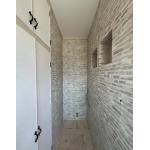 和室とリビングをつなげて洋室に変更しました。 クロスも全面張替えを致しました。 白いレンガ調クロスがアクセントの造作棚の設置で雰囲気が一新。お部屋の雰囲気に合わせてリビングの扉も交換し明るくゆとりある住空間に生まれ変わりました!