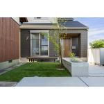 ご実家と同じ敷地に新築されたことで、境界があいまいになっていました。そこで、プラスGの格子付きフレームを設置し、ブラックで引き締めた仕上がりになりました。夜は照明が点灯し、駐車時も安心。スポットライトも設置され、ナイトシーンを美しく彩ります。また、お庭の間取りをしっかり整えることで、活用できる空間が生まれました。人工芝の下には浄化槽が隠れており、点検時には簡単にめくれるようになっています。さらに、デッキを設置し室内とのアクセスも向上。間仕切りとして設けた花壇はベンチとしても利用できます。また、道路からお庭への視線が気にならないよう、フェンスを設置しています。