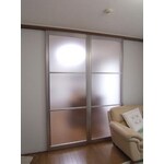 L型キッチンをI型に変更して、ダイニングとキッチンの間仕切り建具の敷居の段差をなくしたいということが当初のご要望でした。キッチンをただI型に変更するだけでは家電などを収納するスペースがなくなってしまうので、I型キッチンに家電収納やゴミ箱ワゴンがついたハイカウンタータイプの収納を組み合わせることをおすすめしました。間仕切り部分は開いた時によりDKとリビングの一体感が生まれるように天井までの高さの透明感のある建具をおすすめし、スッキリとしたLDK空間に仕上がりました。