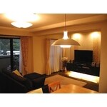 リビングを広くして、ゆっくりとテレビを見ながらくつろげる空間が欲しい、というのがご要望でした。洋室とリビング間の間仕切り壁を撤去し、約17帖のリビングダイニングへ、また和室を奥様の寝室へと改装しました。テレビを置く面に梁があり、スッキリ見せるため、その出面まで壁を付加し、2種類のエコカラットを貼ることに。また、テレビボードは壁付にし、下に照明を取付け、間接照明として使用できるように造作させていただきました。ダウンライトの演出もあり、全体として落ち着いた空間へと仕上がりました。