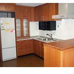 ほとんどの家電が収納出来るキッチンにしました。リフォーム前に比べて非常にスキッリしています。瞬間湯沸し器は取り払いバルコニーの給湯器より給湯しています。タイルの代わりに目地の少ないキッチンボードを貼りお手入れの楽なキッチンにしました。(築30年のマンション ご予算約300万円 商品、工事費含みます)