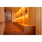 お客様のご要望は、90歳の父母の部屋なのに、トイレまでの動線が長いうえ、無理な増築をしたのが原因で、途中階段ができ、傾斜もきつく、階段幅もせまいため大変使いづらい。中央の階段室に全く窓がなく、暗い感じの空間になってしまっているのを改善したい。ということでした。そこで設計において工夫し次のような改善を図りました。階段ホールに面する家事室に大きな明かり取りを作り、飾り棚を設置することで、変化のある空間にしました。動線の改善をおこない、寝室からトイレの行き来が以前の7分の1なうえバリアフリーになり大きく改善することになりました。家事室をつくり、冬季間の洗濯物を干すスペースを確保するだけでなく、将来介助が必要になった際は、車椅子の旋回スペースとして利用することも可能です。 リフォーム後のお客様の感想は、「夜トイレに行くのに上下しないで行くのがこんなに楽なのかと感じている。」と喜びの声を頂いています。