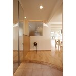 2008年 第25回 住まいのリフォームコンクール エクステリア部門 優秀賞 狭く、暗く、寒かった築20年を「一期一家」で1軒まるごとリフォーム。耐震壁と同じ強度の耐震開口フレームを使用し、室内の奥まで陽射しが届く大きな窓を実現。高断熱・高気密の外断熱だから、玄関ホールからキッチンまで間仕切りがなくても一定の室温を保てます。視覚的な広がりと自然光溢れる明るさが開放的な都心の住まいとなりました。