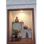 シンプルな玄関が木目調の高級感ある玄関になりました。棚には色々な物を飾る事ができるので楽しみが増えました。