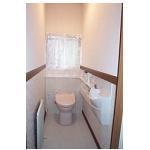TOTOレストパルを使ったトイレリフォーム 木造戸建て 築25年 壁はクロス仕上げで腰の高さで柄を変えています。 壁に断熱材を入れて断熱・防音性能を高めました。 照明器具は人を感じて点灯します。 消し忘れを防止します。