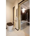 (旧東京ガスリモデリング株式会社での事例です。)ご両親が暮らす実家を2世帯住宅にリフォームしました。玄関は一緒ですが水周りは親世帯、子世帯別です。子世帯の浴室は1階にプランしました。親世帯は安心・快適に生活できるよう動線に配慮しました。