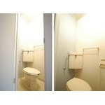 赤系クロスでも落ち着いた雰囲気のトイレ空間