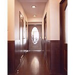 (旧株式会社ダイチでの事例です。)リビングと廊下にフローリングに合わせてブラウン系の腰壁を張り、落ち着きのあるクラシックな雰囲気を演出しました。室内のバランスを考え、英国カントリー調に仕上げています。