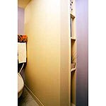 (旧株式会社ダイチでの事例です。)マンションは、浴室やトイレが、ともすると無機的になりがちです。そこで、こうしたプライベートエリアを癒しの空間にすることがテーマとなりました。