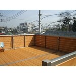 庭が全くない状態であった為車庫の上を有効に利用してもらう為御提案させて頂きました。アルミの骨組み・床等人工木材ですのでノーメンテナンスで利用出来ます。