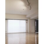 床はベージュ系のフローリングにしコーティングを施しました。 長年WAX不要&美しい輝きが持続します。 窓には光の陰影を楽しめる縦型ブラインドを取り付けました。