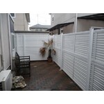 古くなったウッドデッキの塗装、テラス屋根の取り換え、フェンス工事をしました。住宅が密接する場所でしたので、フェンスを目隠しタイプにしました。