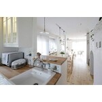 ご主人様のご実家で、新しい生活を迎えることとなりリフォームプランがスタートしたH様。 H様からのご要望は5点。 ① キッチンは、洋書に出てくるような夢のある空間に!対面でホワイト! ② 家電の存在感が気になるので、TVは隠せる収納を造作。 ③ 住む人に合わせた間取りと収納。 ④ 雑貨が大好きなので、集めてきたものをカフェのように飾り楽しみたい。 ⑤ 子供達も喜ぶ空間にデザインしてほしい。 また、インテリアのイメージは、素朴でアンティークが似合う家。 そこで、柱は古材風に仕上げ、塗装もH様がメンテナンスで塗りやすい塗料を選定。 LDKの一角に施した珪藻土は、存在感のあるパターンでインパクトを持たせました。