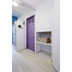 ご主人様のご実家を2世帯住宅にリフォームされたK様。 ご実家の既存部分を活かしながら、息子様ご夫婦お好みのテイストに仕上げました。 リフォームをするにあたり42㎡と限られた空間の中にLDKと主寝室、水廻り(浴室・洗面室・トイレ)を配置する為、廊下はつくらず、LDKを中心に各お部屋へ出入できるような間取りに変更。至る所にお好みの雑貨や写真等をディスプレイできるよう、カラーの中にデコレーション(飾りつけ)を楽しむ場所を隠しました。 キッチン上部は天井を高くし、梁を見せる事で開放感を演出。2階床下にはセルロースファイバーを充填し、1階にお住まいのお母様への配慮(音の問題)とともに断熱性も高めました。