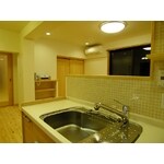 キッチン/台所:明るいキッチンになりました。 シンクの右側もひろく、調理準備がしやすいです。 床のパイン材とキッチン空間も温かみのある空間ですね。
