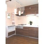 建築当時のキッチンで、非常に料理がしづらく、収納が少ないということが奥様のお悩みでした。デッドスペースに壁面収納を設置したり、吊り戸棚の下にも収納可能な棚を設けて調理スペースを確保しつつ、収納もたっぷりと取れる、奥様の念願だった「料理のしやすいキッチン」を実現しました。