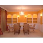 日本の自宅ではご提案が難しい大胆な色使いでしたが、海外でのご経験が豊富なお客様は、迷いもなくコーディネートされていました。 元々の諸条件をカバーする為の徹底したモールディング使いや配色、また、各部屋から見る中庭が、今回のリフォームに重要な役割を果たしたと思います。