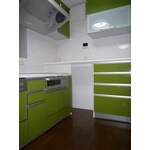 オール電化をきっかけにリフォームすることになったE様。IHにするなら長年使ったキッチンも新しくして、使い勝手を良くしたい!と女性プランナーと一緒に細かくプランを考えていくことに。奥様の希望はときどき遊びに来る娘さんと一緒にキッチンに立つこと。そのために、プランナーがキッチンを狭くしていた背面収納をなくしてコーナー収納を設けることをご提案。システムキッチンの規格がないカウンター部分は、家具屋さんに部分オーダーしました。置き場所に困っていたゴミ箱も、カウンター下にすっきり収納できます。