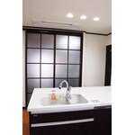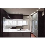 築35年の中古住宅を購入された、若いご夫婦のためのキッチンリフォーム。元旅館のなごりが残る、和風住宅の趣に合ったダークブラウンと白い天板のモダンなキッチンになりました。