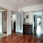 (旧東京ガスリモデリング株式会社での事例です。)お客さまが多いとのことでしたから、プライベートゾーンとパブリックゾーンを分けて設計しました。生活動線をすっかり見直しLD、キッチン、書斎、寝室、サニタリー、玄関ホールが回廊のような形でつながり、家中の移動がスムーズになるようにプランを考えました。騒音対策には二重サッシにすることで解消。リビングは既存の松の板間がいい材料だったので生かすことをお勧めしました。