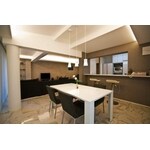 壁や床に断熱材を入れ、リビングの壁にエコカラット、空気が通る小窓や換気扇を増設するなど様々な工夫を施した。白を基調としたモダンな内装に、壁の一部の色を変えてアクセントを効かせている。収納も増設し、キッチンにはパントリーとユーティリティを。「使い勝手の良い収納とモダンなデザインが気に入ってます」とK夫人も絶賛の住まいに。