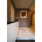 壁や床に断熱材を入れ、リビングの壁にエコカラット、空気が通る小窓や換気扇を増設するなど様々な工夫を施した。白を基調としたモダンな内装に、壁の一部の色を変えてアクセントを効かせている。収納も増設し、キッチンにはパントリーとユーティリティを。「使い勝手の良い収納とモダンなデザインが気に入ってます」とK夫人も絶賛の住まいに。