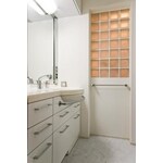 壁や床に断熱材を入れ、リビングの壁にエコカラット、空気が通る小窓や換気扇を増設するなど様々な工夫を施した。白を基調としたモダンな内装に、壁の一部の色を変えてアクセントを効かせている。収納も増設し、キッチンにはパントリーとユーティリティを。「使い勝手の良い収納とモダンなデザインが気に入ってます」とK夫人も絶賛の住まいに。