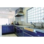 ウォーキングの途中、偶然見つけたリフォームフェアがMさんと弊社の出会いでした。Mさんは展示を見ていくうちに夢が広がってリフォームをしたい気持ちが強まったそうです。「キッチンをあまり生活感を感じさせない空間にしたい」という希望に、弊社プランナーはイタリアンモダンのDKを提案。床・壁・天井を白で統一し、ガラスブロックで光のあふれるスペースに仕上げました。深いブルーのシステムキッチンが映える、Mさんの夢を実現できた空間です。