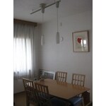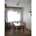 キッチンと和室の間の壁・押入を取り払い、リビング・キッチン・ダイニングがひとつの大きな空間になるよう間仕切り変更いたしました。 また壁を取り払った部分に新たにオーダーの収納カウンターを造作しました。キッチン側には主に食器、ダイニング側にはカトラリーの収納を設けました。 天井・壁にはスイス漆喰、床にはコルクを貼り素足でも気持ちがいいダイニングとなりました。