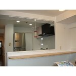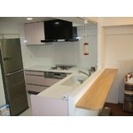 キッチンがLDから壁で仕切られてしまっていたので、間仕切り壁を撤去しLDKをつなぎ、開放的な空間に変更。壁に向かって設置されていたキッチンを、L型に配置して対面キッチンにしました。リビング側にはカウンターを設け、会話しやすいLDKになりました。