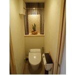 | その他採用機器・設備 | SATIS/LIXIL 節水・省エネに優れたタンクレストイレを使用しました。 また、壁・天井は自然素材の珪藻土で仕上げ、多機能なタイルECOCARATをアクセントに採用しました。 とてもおしゃれで安らぎを与えるトイレ空間が出来上がりました。 |