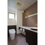 給排水の位置の変更から始まり、お施主さまの意見を反映した自由度の高いプランです。ご主人さまの意見から高級ホテルのように壁に横長の鏡を設置し、奥さまの意見からメリハリのある色彩バランスに仕上げました。
