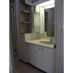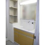 浴室・洗面室のリフォームでお問合せを頂いていたお施主様。お打合せの際に「家族と会話をしたり、テレビを見ながら料理をしたいので、壁で仕切られたキッチンを対面キッチンにしたい。」とのことから対面キッチンのプランニングとお見積りをし、リフォームすることとなりました。プランのポイントは、リビングを圧迫せず、尚且つ使いやすくスッキリとした空間の取れた対面キッチンにすること。その為、給排水をどのように引き込むか?配置バランスは充分に考慮しました。キッチン前の腰壁は、リビング空間とのバランスを考慮し、手元が隠れる高さに。給排水は、冷蔵庫の背面に壁を造って引き込むことで床上げをせず、排気ダクトは天井から廻して浴室の天井裏で既存のダクトと結ぶ事で、リビング側を圧迫せず、スッキリとした明るいLDK空間を実現しました。
