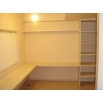 リビングに隣接する和室を、お子様のスタディールームに改装しました。壁をつくることで、お部屋が狭く感じる可能性があるので、どう圧迫感をあたえずにリフォームするかに、気を配りました。大きな開口部を設けることで、開放的な雰囲気になりました。スタディールームは、長いカウンタータイプの机と本棚を、造作しました。また、和室にあった押入れは、クローゼットに改修しています。昼間は、お子様とお母様が椅子をならべてお勉強できるスペースに、夜はお父様の書斎としても、ご使用いただけるかと思います。