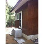 施工前は脱衣室も目隠しも無い状態でした。ガラスの引き戸からアウトセットの引き戸に変え、隣室が暗くならないよう採光にも配慮いたしました。浴室は温かい方が良いとのご要望でしたので断熱仕様タイプをお勧めしました。屋根工事も伴いましたが、お客様が保管されていた瓦を再利用する事が出来たので外観を損ねる事無くきれいに仕上がりました。