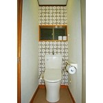 トイレを新しくしたい、というご要望だけでなく、新しくするのに伴なって内装も一新して気分もリフレッシュしたいとのことでしたので、できる範囲で内装にもこだわって工事をしました。 お施主様とサンプル帳を広げながらこれはどうかな、こっちはどうかな・・・と打ち合わせしたのがとても印象的です。 その甲斐あって、インパクトがあって可愛らしい仕上がりになりました。