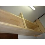 ご夫婦揃って、読書家のM様。大切にしたい本がどんどん増えて、書庫の本棚がいっぱいになってしまい、お困りとのことでした。今回は奥様のご希望で、書庫の上の空いているスペースに本棚を造作しました。様々なサイズの本に対応できるよう、棚を可動式にし、本の重さに耐えられるよう、厚さ30ミリの集成材を使用しました。