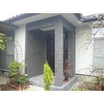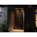 既存の玄関ドアは、木製で大変おしゃれなドアだったのですが、重さもあり、床を引きずってしまいました。 お客様より玄関の印象をガラッと変えたいということでしたので、玄関のまわりだけタイルを貼り、照明にもこだわってご提案させていただきました。夜のライトアップされたタイルも大変おしゃれに見えます。 後日お客様のお宅へお伺いした際には、以前の玄関の木製ドアがきれいなテーブルになっていました。