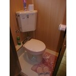 80cm角の空間と、壁面を20センチほど張り出して広くした部分から成るトイレ。あまり奥行のあるものは設置できないので、隅付形のコンパクトなものを取付けました。