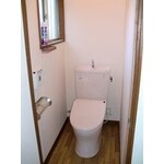 今回、トイレ交換、クロスの貼替、床の張替を行いました。トイレ内に手洗い器がほしいという事でしたので、前と同じ形の手洗い器付を設置させていただきました。