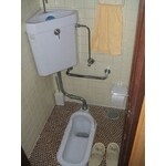 <施工前>高齢者の方には特に危険で体に負担のかかる老朽化した和式トイレ、壁・床もタイル仕上げで冷たい印象でした。<施工後>洋式トイレになり、品の良いスタイリッシュな洋式トイレに生まれ変わりました。壁はクロス、床はクッションフロアで仕上げました。