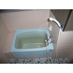 借家に入居されるにあたって、浴槽がひび割れていたので取替えたいとのご希望でした。 工事代は入居者様のご負担でしたので、極力安く上げるため浴槽廻りのタイルの補修も最低限にとどめました。