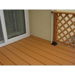 木製のウッドデッキは毎年塗装が必要になりそうなのと、長期間の使用が難しい感じがしましたので、思い切って人工木材素材にしてみました。洗濯干し場兼、子供の遊び場として考えていましたが、建物のイメージも明るくなったと感じています。
