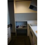 キッチンをIH付きに交換し、横に収納をキッチンと同じ面材の家電収納棚とカウンターで造作しました。