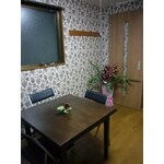 柄物の店舗用クロスで素敵なお部屋になりました。 ビビットな色・柄ですが、圧迫感なくおさまりました。