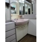 (旧株式会社アトリエ住まいるでの事例です。)洗面化粧台も清潔感のある白で統一して、引き出し式の収納によって収納力も申し分ありません。お客様も自分で取り付けた壁のパネルとよく合ってて満足されてます!
